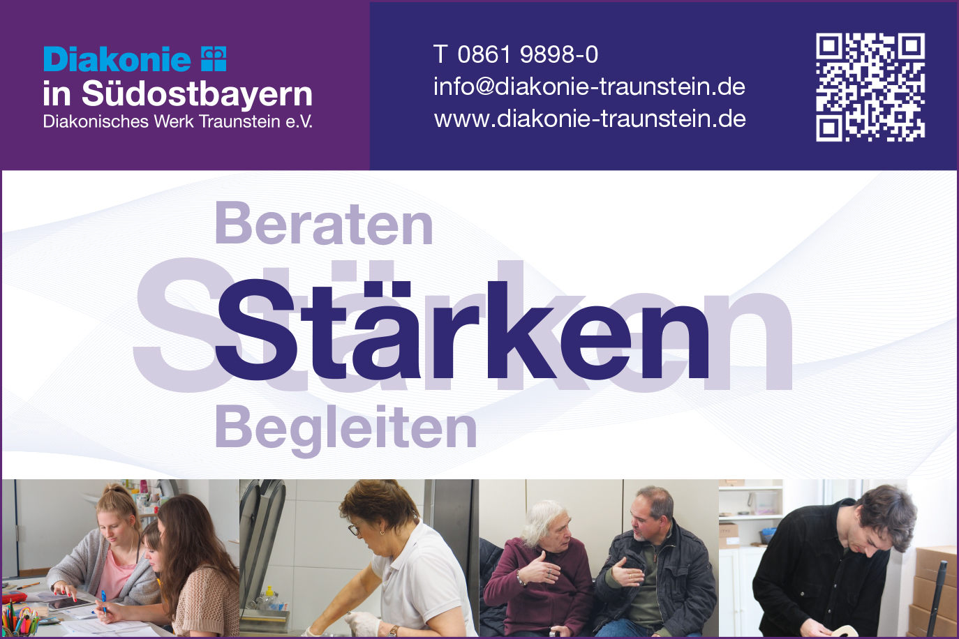 - Das Diakonische Werk Traunstein betätigt sich in zahlreichen Feldern sozialer Arbeit. Die Angebote und Hilfen richten sich an alle Altersgruppen. Hinzu kommen Angebote speziell für Mitarbeitende, wie Familienbudget, Sonderurlaub, Jahressonderzahlung etc. Alle diese Informationen finden Sie unter www.diakonie-traunstein.de.